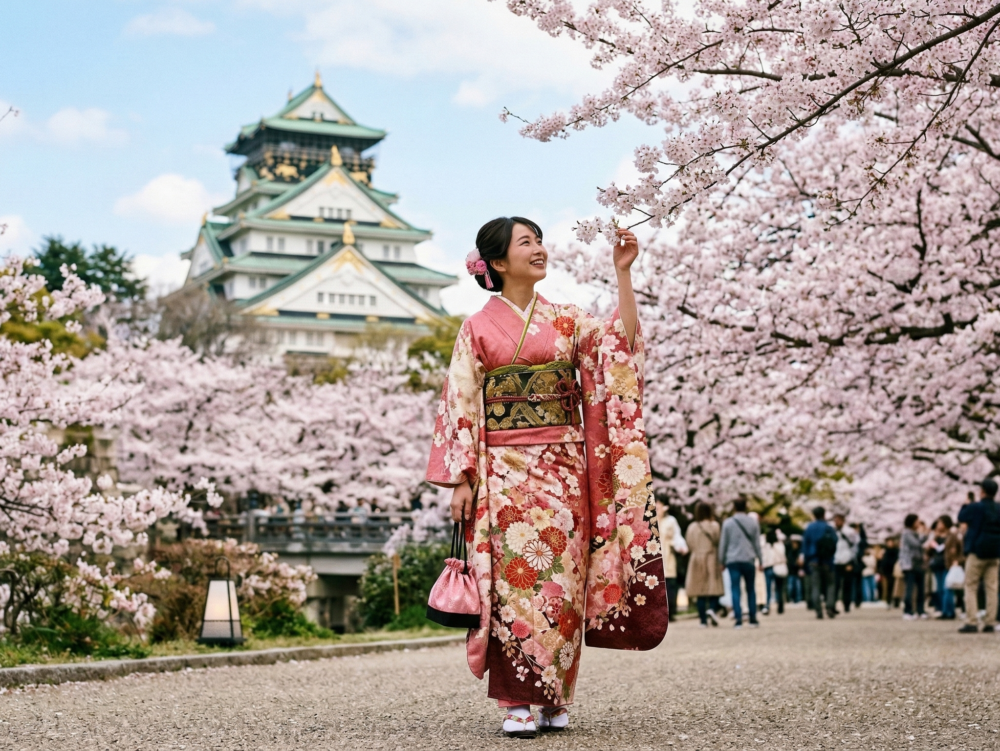 The deep red obi adds elegance, balancing sweet and mature charm.